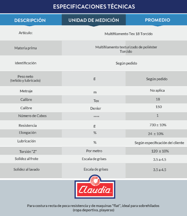 Para costura recta de poca resistencia y de máquinas "flat", ideal para sobre hilados (ropa deportiva, playeras).