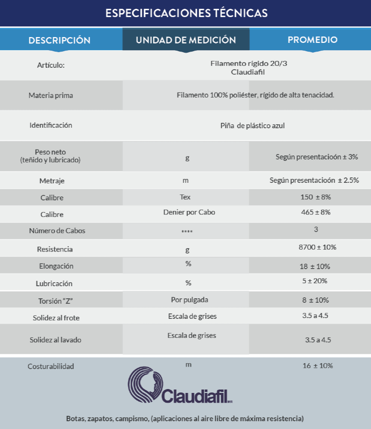 Filamento 100% poliéster, rígido de alta tenacidad