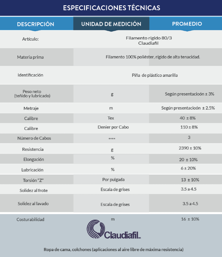 Filamento 100% poliéster, rígido de alta tenacidad